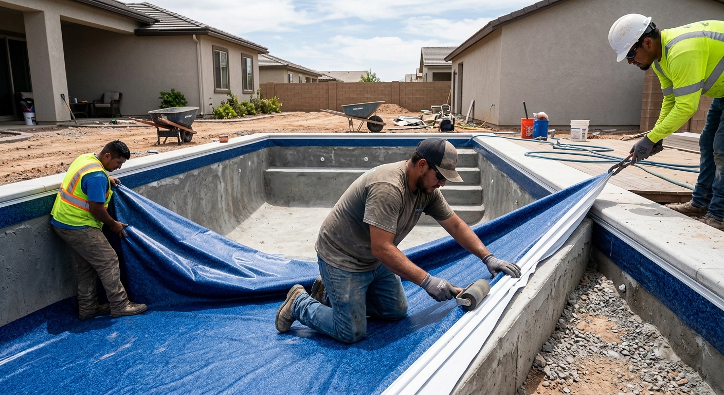 Remise a neuf de piscines existantes : impermeabilisation, reparation des fissures, remplacement du revetement (vinyle, peinture epoxy, carrelage) et modernisation.